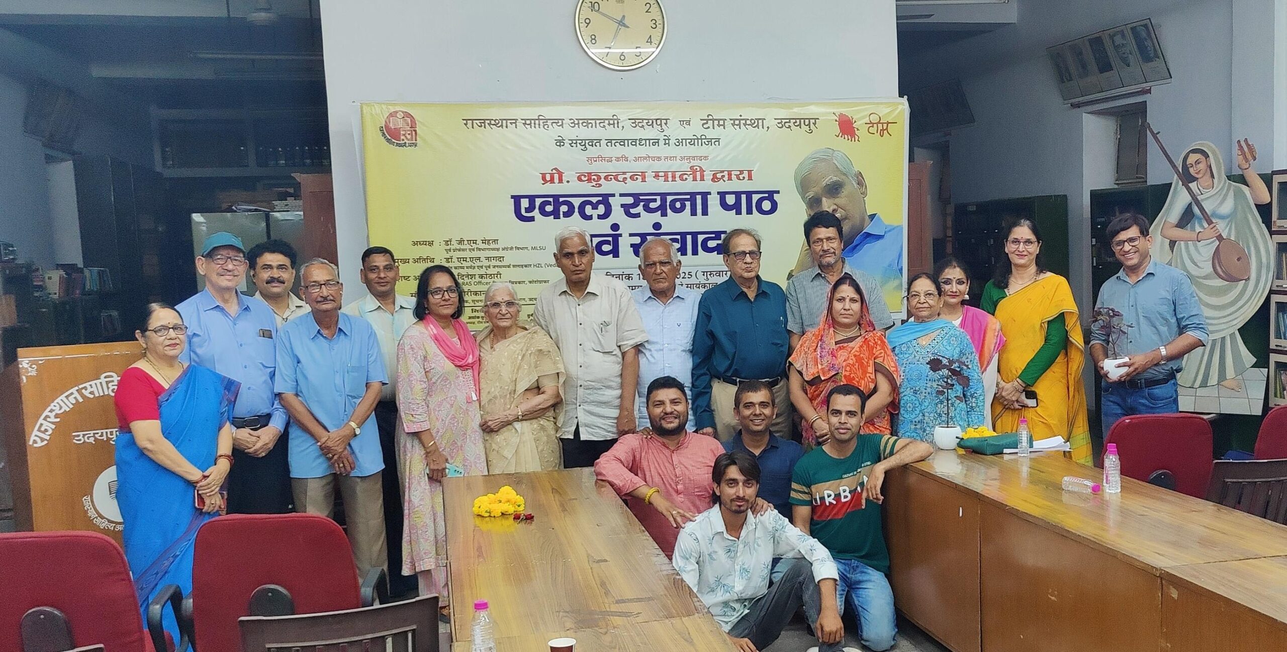 उदयपुर, राजस्थान साहित्य अकादमी एवं टीम संस्था के संयुक्त तत्वावधान में सांस्कृतिक सृजन पखवाड़ा के तहत सुप्रसिद्ध कवि, आलोचक तथा अनुवादक कुंदन माली का एकल रचना...