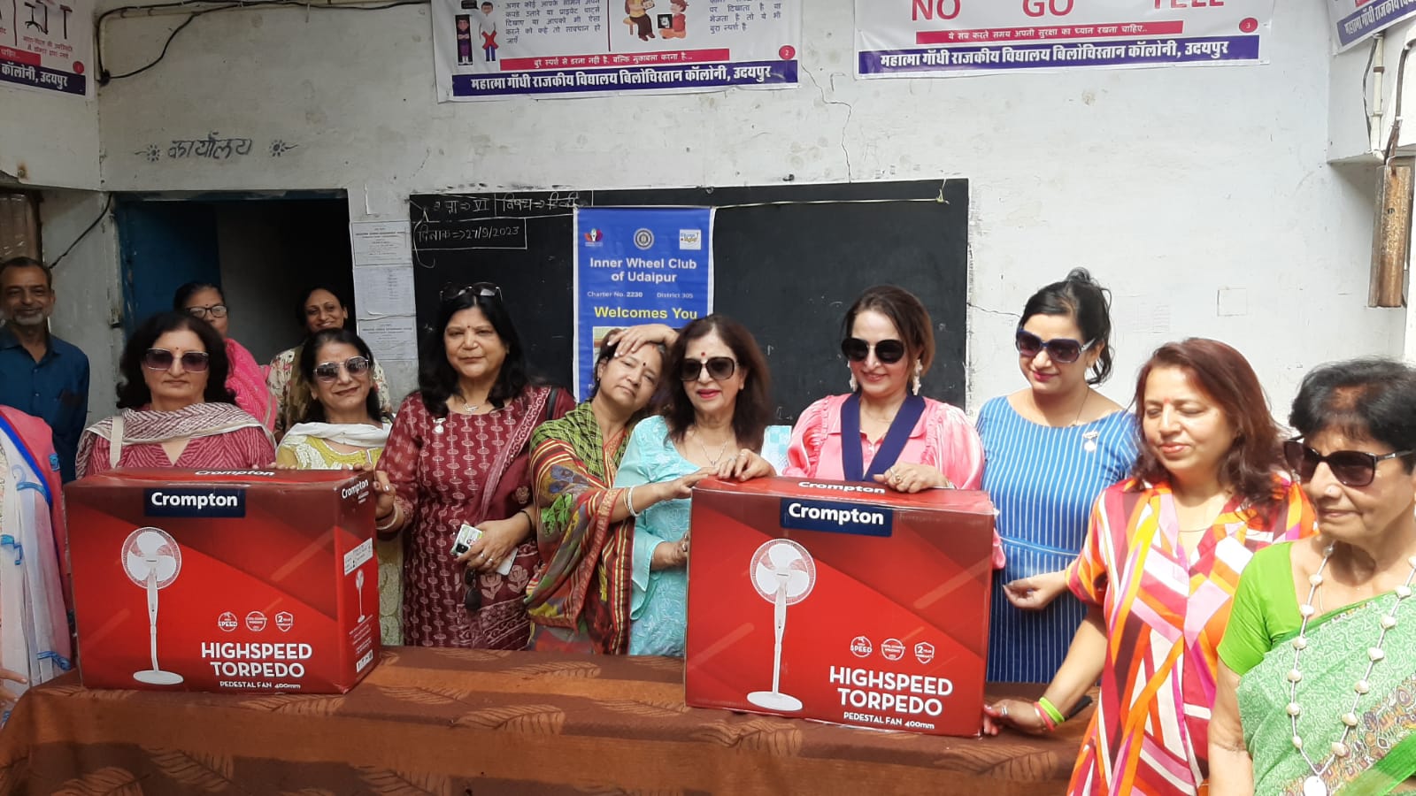 इनर व्हील क्लब उदयपुर की ओर से बुधवार को रेगर कॉलोनी स्थित महात्मा गाँधी राजकीय विद्यालय में आयोजित एक समारोह में विद्यालय को दो पंखे भेंट...