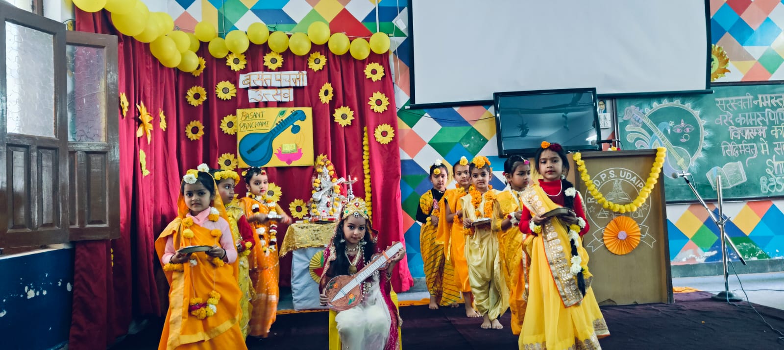 इस अवसर पर विद्यालय के सभी विद्यार्थियों ने पीले वस्त्र धारण किये और पीले रंग के पकवानों का खूब आनंद उठाया।