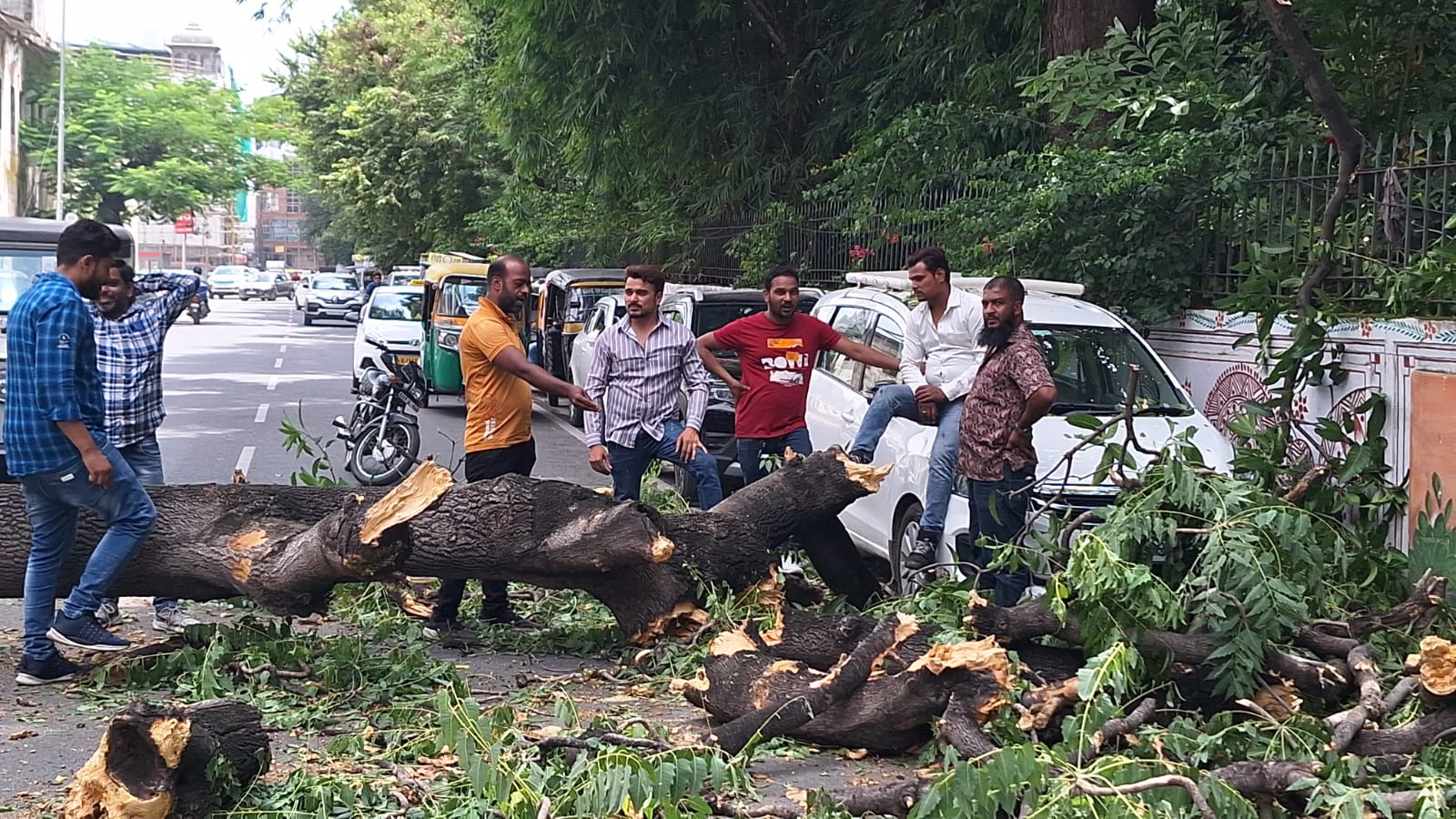 कई समय से गिरने की अवस्था में था पेड़।